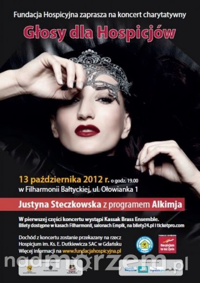13 października 2012 r., o godz. 19.00 w Filharmonii Bałtyckiej w Gdańsku, przy ul. Ołowianka 1 wystąpią znani i lubiani artyści. Pierwszą część wypełnią znane standardy w wykonaniu zespołu Kassak Brass Ensemble. Gwiazdą wieczoru będzie Justyna Steczkowska z programem"Alkimja". W przerwie koncertu w foyer odbędą się loteria fantowa i licytacja.