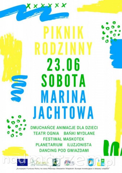 Plac przy Marinie Jachtowej. Godz. 12. Na Pikniku przewidziano mnóstwo atrakcji dla całych rodzin. Animacje dla dzieci, dmuchańce, wielkie maskotki, pokazy estradowe,