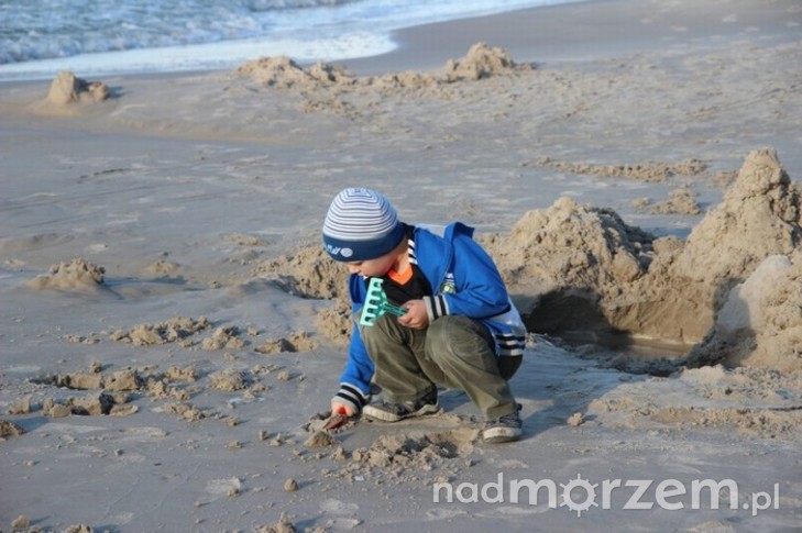 Od kilku dni nad morskim wybrzeżem wieje dość silny wiatr. Po niebie szybko płyną białe baranki, drzewa kołyszą się i przyjemnie szumią, a wzburzone morskie fale wyrzucają na brzeg liczne muszelki i drobne bryłki bursztynu.